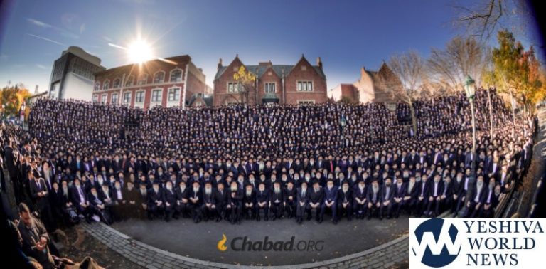 (PHOTOS IN EXTENDED ARTICLE) Thousands of Shluchim posed for a group photo in front of Chabad-Lubavitch world headquarters in the Brooklyn borough of New York, Sunday, Nov. 4, 2018. They