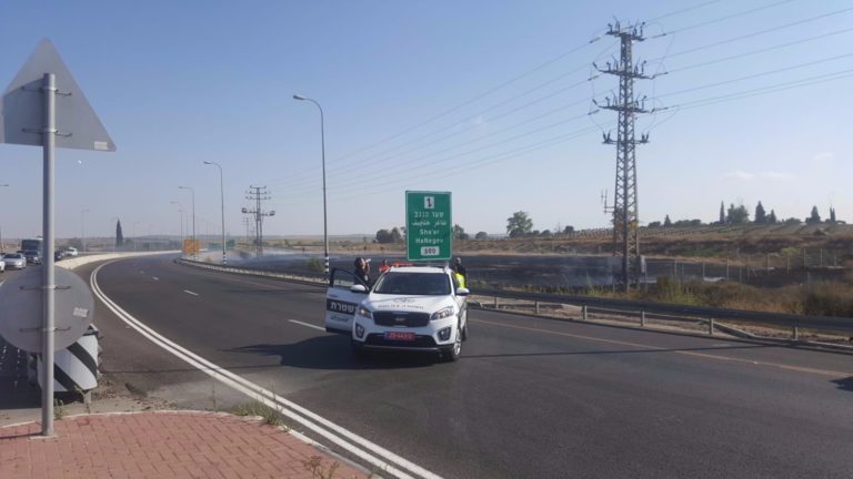 Due to a ‘security incident’ along the Gaza border, Route 446 near the Natuf Quarry on Thursday morning, 3 Marcheshvan, the road was closed to civilian vehicles. Four burning tires