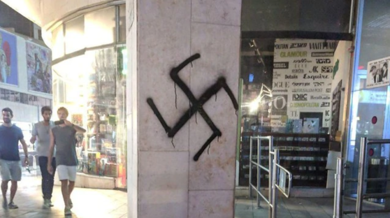 Police early Sunday morning, 28 Tishrei, arrested a man who is believed to have been spray painting swastikas on walls in Tel Aviv of late. Police report the suspect was