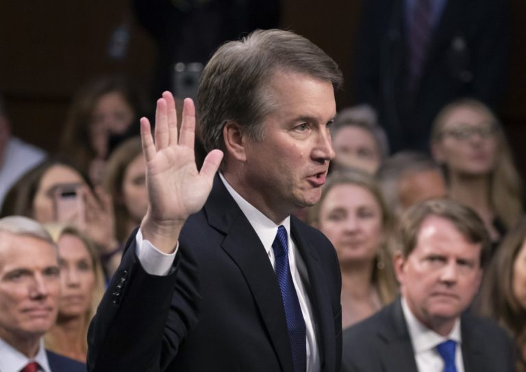 A high-stakes partisan row quickly broke out Thursday over a confidential FBI report about allegations that Brett Kavanaugh abused women three decades ago, with Republicans claiming investigators found “no hint