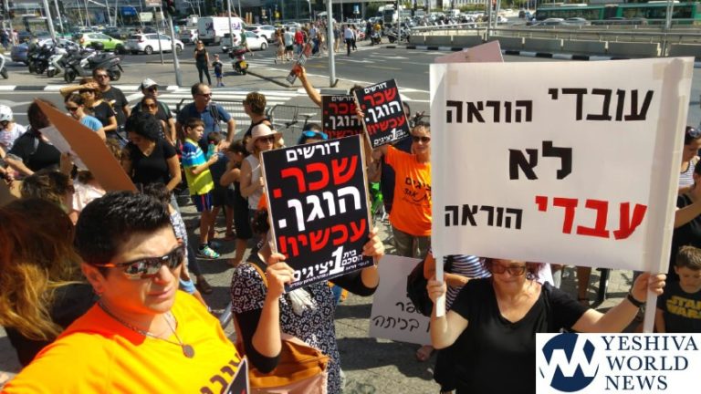 (VIDEO AND PHOTOS IN EXTENDED ARTICLE) Teachers and kindergarten teachers arrived on Tuesday morning Isru Chag Simchas Torah at the Government Campus in Tel Aviv and called on the Minister