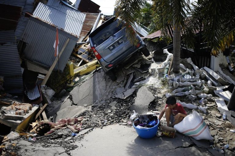Trucks carrying food for desperate survivors of the earthquake on Indonesia’s Sulawesi island rolled in with a police escort Tuesday to guard against looters, while the death toll from the