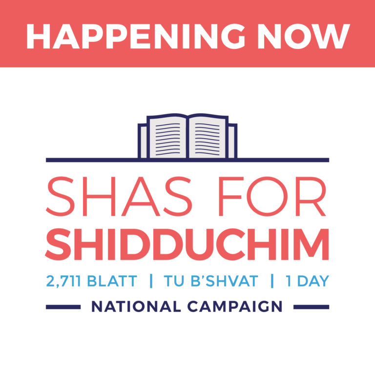 Hundreds of lomdim will unite to complete shas on behalf of Klal Yisroel’s singles. Sponsor a daf for the zchus of finding a shidduch for yourself, friend or family member.