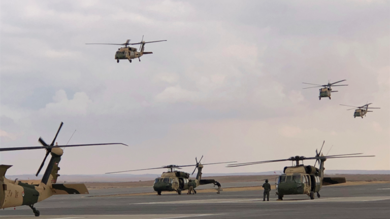 Jordan has marked the U.S. delivery of 12 Black Hawk helicopters over the past nine months with a military ceremony, including a hostage rescue drill and a flyover. The helicopters