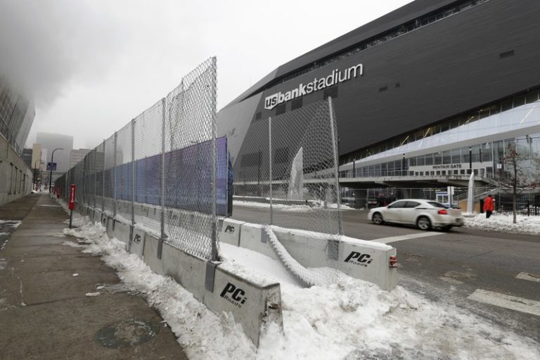Concrete barriers and chain-link fencing are going up around the site of the Super Bowl in downtown Minneapolis, where a contingent of local, state and national agencies is working to
