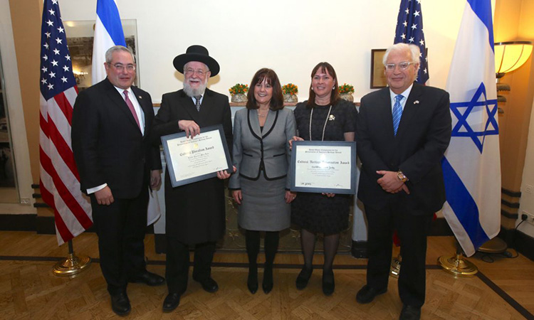 In a ceremony in Jerusalem, Karen Pence, the wife of the vice president of the United States, honored two Israelis who are active in ensuring the world never forgets the