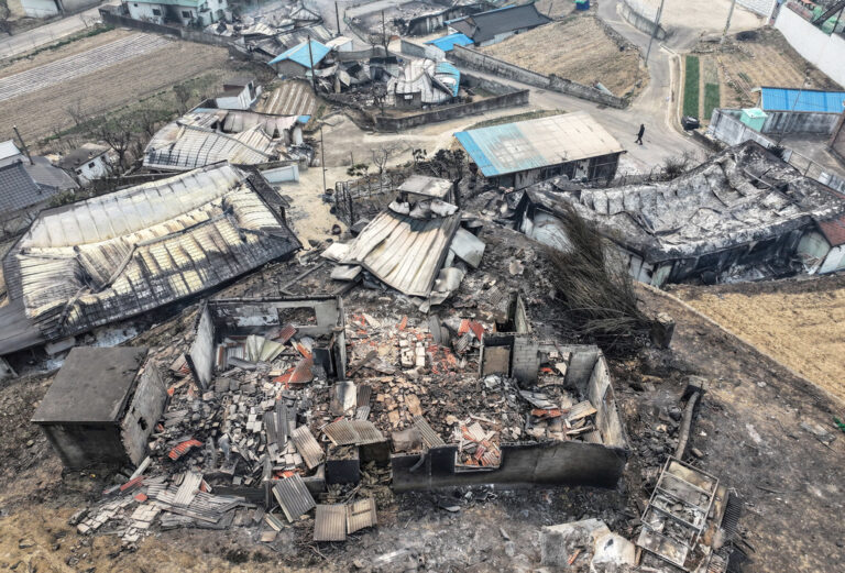 Wind-driven wildfires that were among South Korea’s worst ever have ravaged the country’s southern regions, killing 24 people, destroying more than 200 structures and forcing 27,000 residents to evacuate, officials