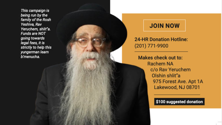 “I KNOW R’ BINYOMIN FROM THE DAY HE CAME TO LAKEWOOD. HE IS A TZADDIK GAMUR.” RAV YERUCHEM OLSHIN, SHLIT”A This campaign is being run by the family of the