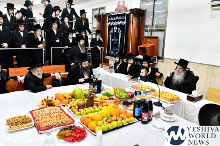 Bnei Brak, Israel – Thousands of Vizhnitzer Chassidim from across the country gathered on Motzei Shabbos at the central Beis Medrash to celebrate the “Furshpiel” of the great-granddaughter of the