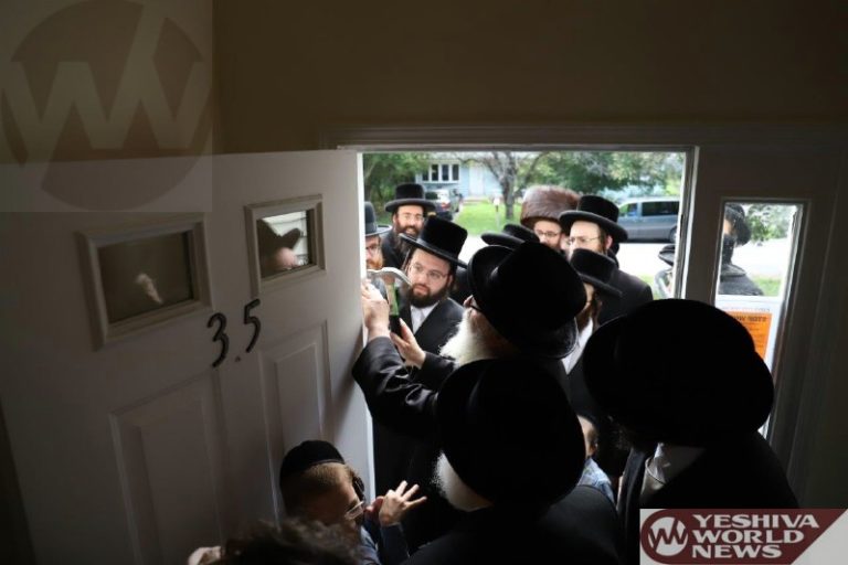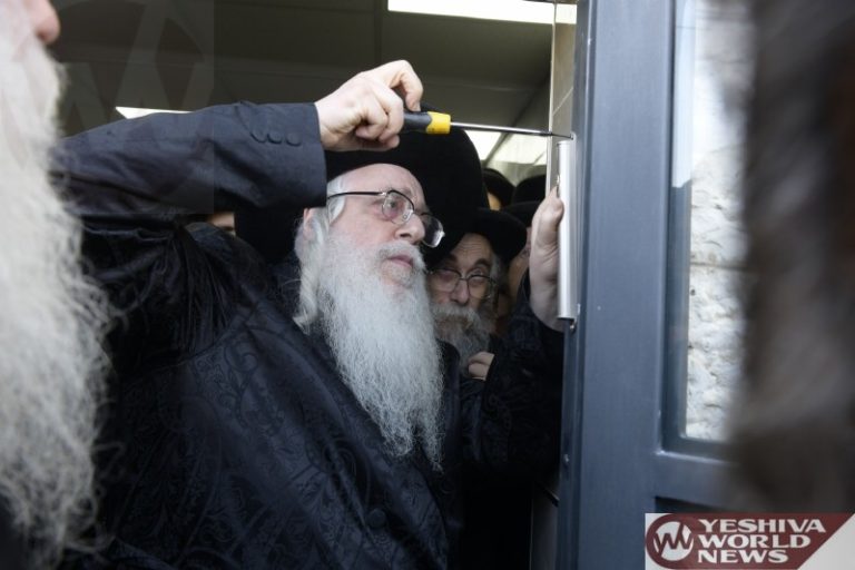 Photo Essay: Sanz Rebbe Affixes A Mezuzah At The New Entrance For Mosdos Sanz In Kiryas Sanz, Yerushalayim (Photos by JDN)