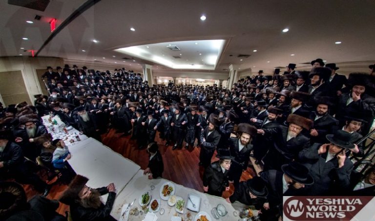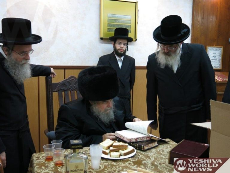 Photo Essay: Belzer Rebbe Conducts A Lechaim Tish Upon The Release Of The Mesilas Yesharim (Photos by JDN)
