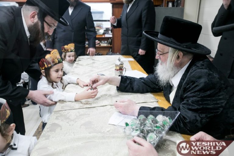 Photo Essay: Munkatch Rov Giving Out Chanukah Gelt To The Munkatch Cheder Talmidim (Photos by JDN)