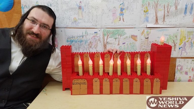 Photo Essay: Menorah In Shape Of The Munkatch Shul In Boro Park In The Munkatcher Cheder (Photos by JDN)