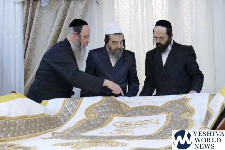 Photo Essay: Rav Yaakov Meir Shechter, Pictured Here With The Beautiful New Paroches For His Shul In Uman, Done By Mefoar Judaica (Photos by JDN)