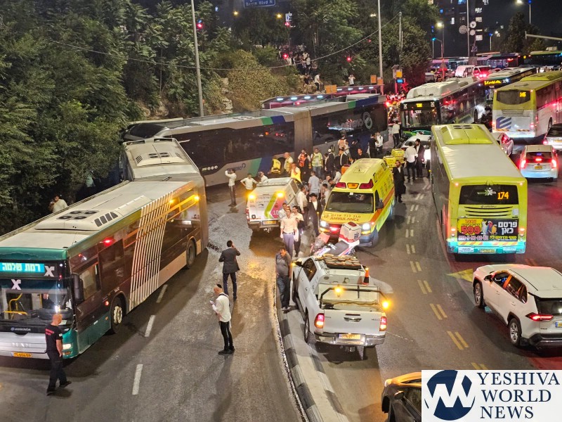 Twenty bus passengers were lightly injured in a traffic accident between two buses and a private vehicle near the Gesher Meitarim at the entrance to Jerusalem on Monday evening. One