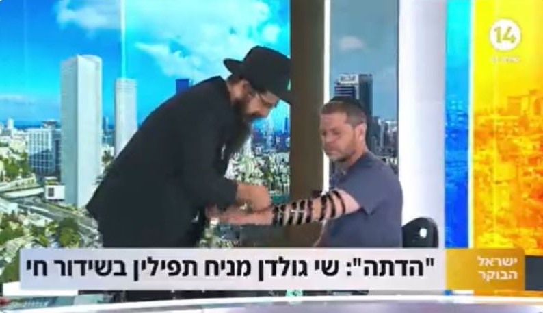Secular Israeli TV host Shai Golden invited a Chabad rav to help him put on tefillin on a live broadcast on Channel 14 News in response to the recent incitement