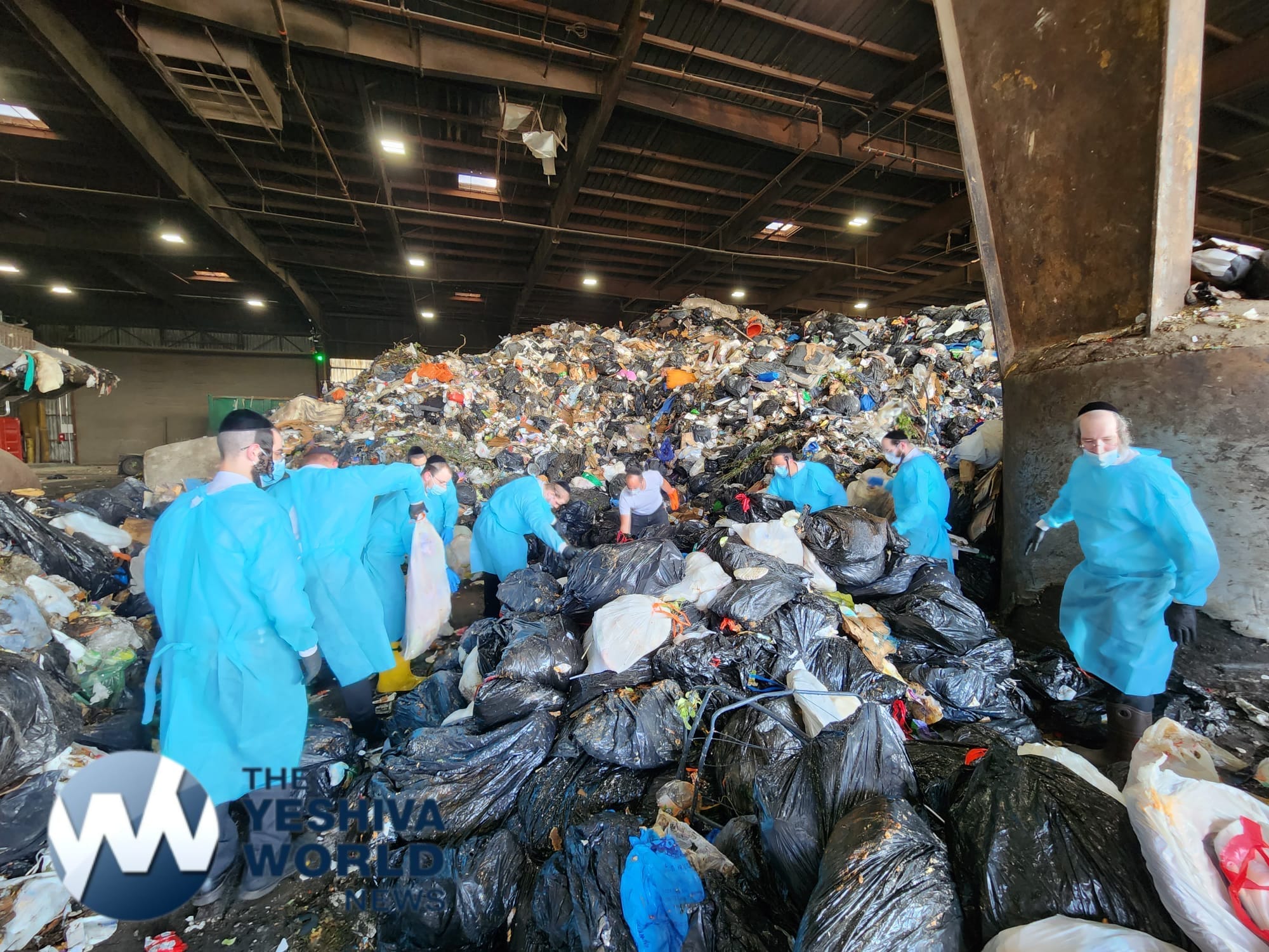 A group of volunteers from Chaveirim and Shomrim of Boro Park returned a suitcase containing a man’s tallis and tefillin to its rightful owner after sifting through piles of garbage