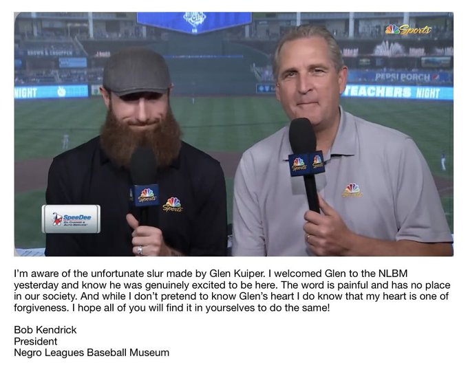 Oakland Athletics broadcaster Glen Kuiper has been suspended after uttering what sounded like a racial slur while describing a trip to the Negro Leagues Baseball Museum. NBC Sports California said