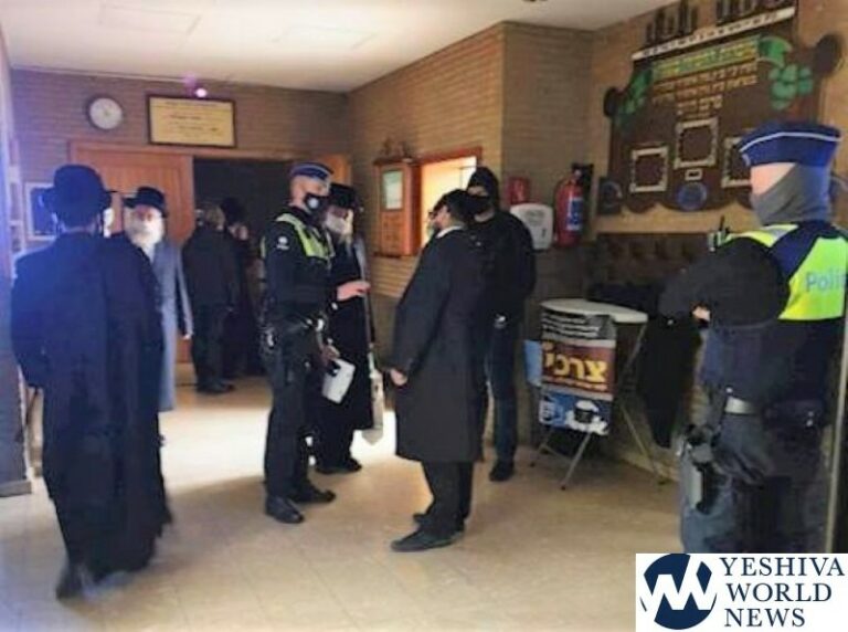 Antwerp police officers raided a Belzer maariv minyan on Tuesday night, B’Chadrei Chareidim reported. According to Belgian law, only gatherings of up to 17 people are currently allowed. The number