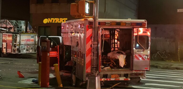 A heart attack patient was killed Thursday when a fire truck crashed into the ambulance that was carrying him to a Brooklyn hospital, authorities said. The crash at Myrtle and