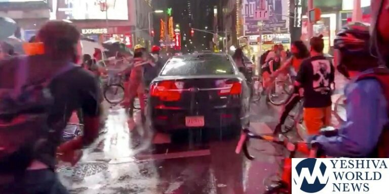 The New York Police Department says it is trying to find a car that drove through a group of Black Lives Matter protesters blocking a street in Times Square. Video