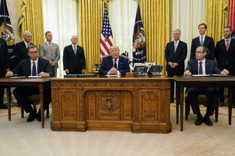 President Donald Trump announced Friday that Serbia and Kosovo have agreed to normalize economic ties as part of U.S.-brokered talks that include Belgrade moving its Israeli embassy to Jerusalem, and