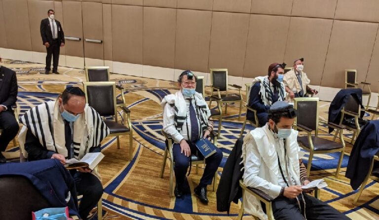 Members of the Israeli-US delegation in the United Arab Emirates joined the local Jewish community for Shacharis on Tuesday morning at its shul in Abu Dhabi. Rav Levi Duchman, the