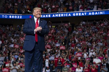 President Donald Trump launched his comeback rally Saturday by defining the upcoming election as a stark choice between national heritage and left-wing radicalism. But his intended show of political force