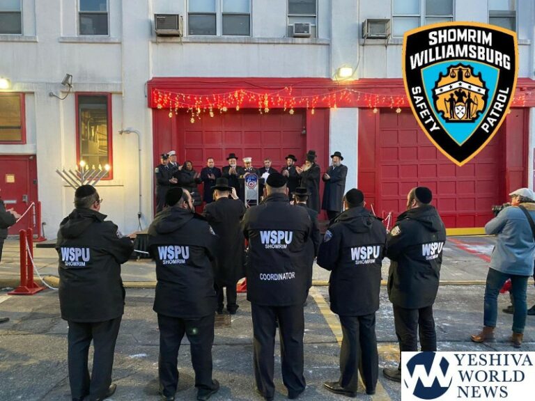 A Menorah-lighting was held in Williamsburg on Sunday night, the first night of Chanukah. Members of Williamsburg Shomrim, as well as some local community activists were in attendance. Rabbi Abe