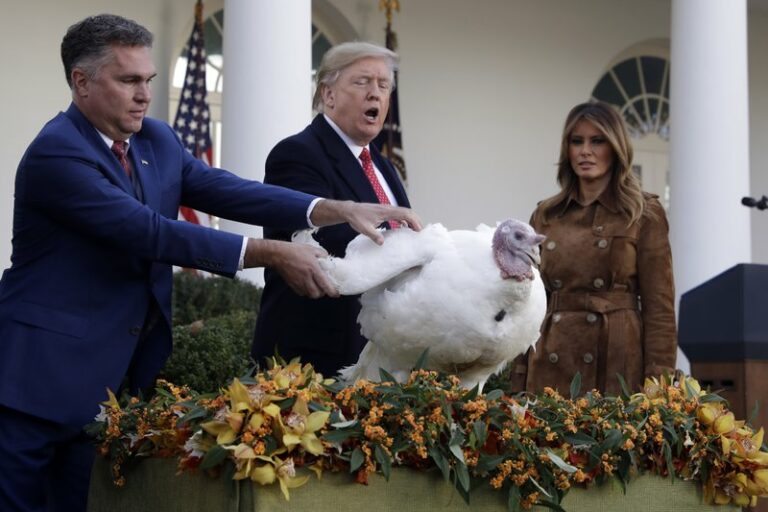President Donald Trump couldn’t resist riffing on the House impeachment inquiry Tuesday as he continued the tradition of pardoning a Thanksgiving turkey, generating holiday-season laughter at the expense of House