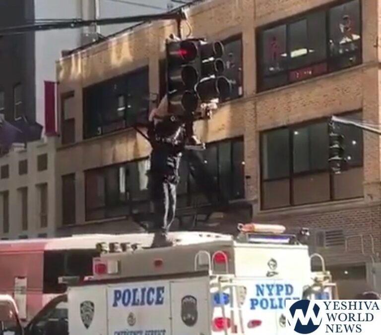 A man scaled a traffic pole, and mounted himself on a traffic light in Midtown Manhattan on Wednesday. The incident happened at the intersection of West 36th Street near 6th