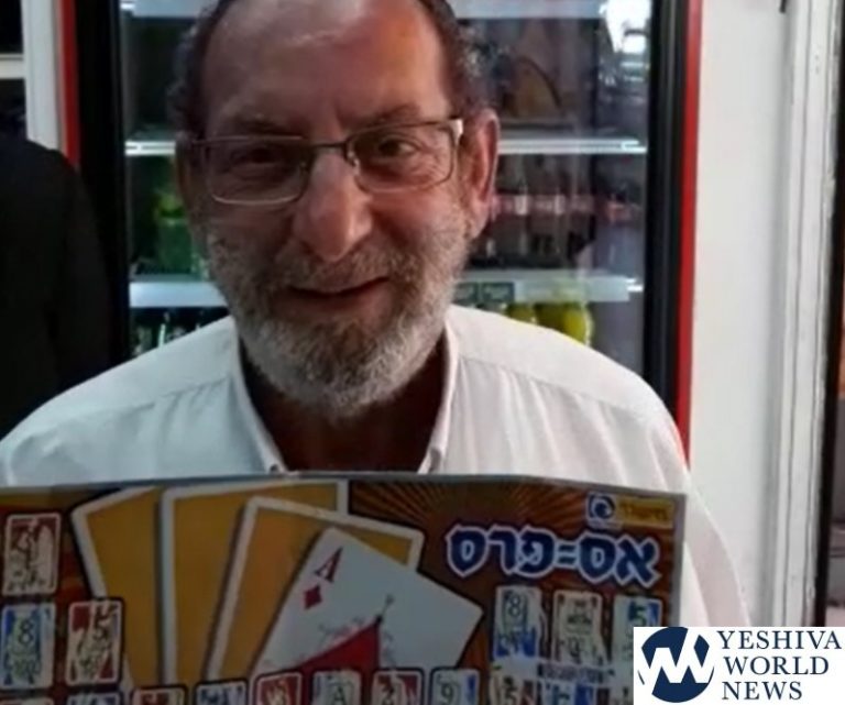 A chareidi man on Thursday won NIS 500,000 from a lottery ticket that he purchased in a Bnei Brak store, the first card that he ever bought, spending NIS 50