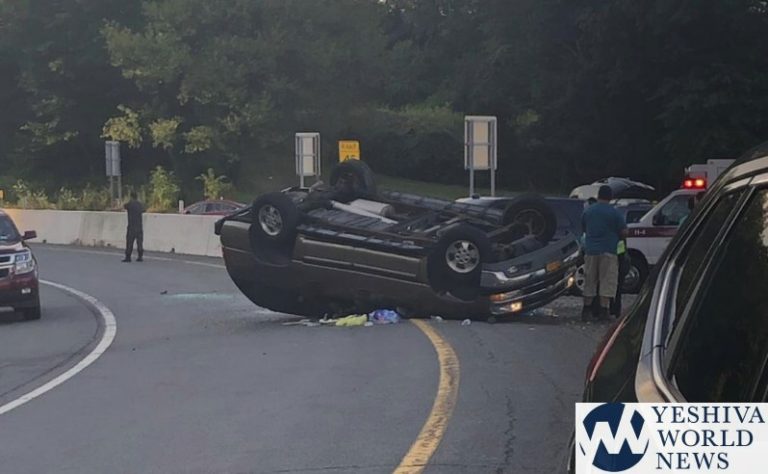 A Jewish family was injured after the vehicle they were travelling in overturned near Monsey, Thursday evening. It happened on the off ramp from the Garden State Parkway heading onto