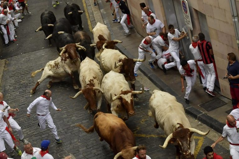 SPAIN — Five people were hospitalized after the opening bull run of this year’s San Fermin festival in Pamplona, including two Americans and a Spaniard who were gored by bulls,