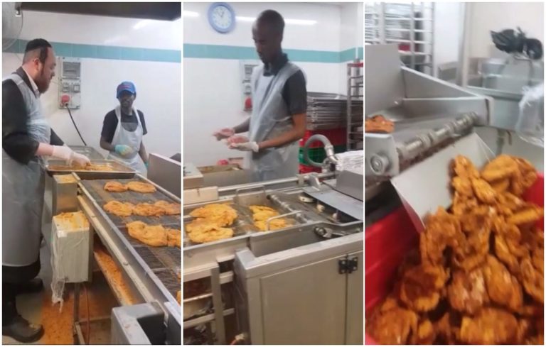 This machine enables the kitchen at Yeshivas Mir Yerushalayim to produce over 10,000 pieces of fried shnitzel, needed to feed the thousands of Bachurim and Avreichim at the biggest Yeshiva
