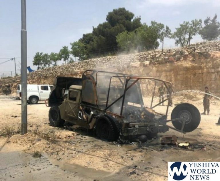The following video and photos show an IDF jeep in the Gush Etzion area, near el-Hader, which burst into flames, reportedly due to a technical mishap. B’chasdei Hashem, there were
