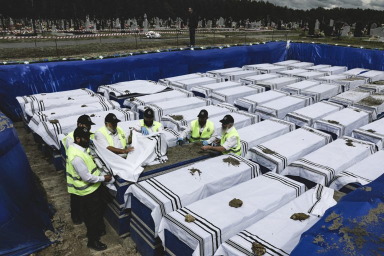 Remains of more than 1,000 Holocaust victims were laid to rest on Wednesday in a Belarusian city on the border with Poland after a mass grave was discovered on a