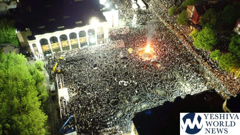 A massive Medura lit up the sky in the Town of Palm Tree (formally known as Kiryas Joel) on Wednesday evening, as tens of thousands of Satmar Chassidim joined their