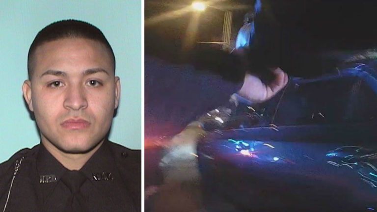 A police officer in New Jersey’s largest city has been indicted following a wild chase in which he repeatedly got out of his patrol car and opened fire, leaving one