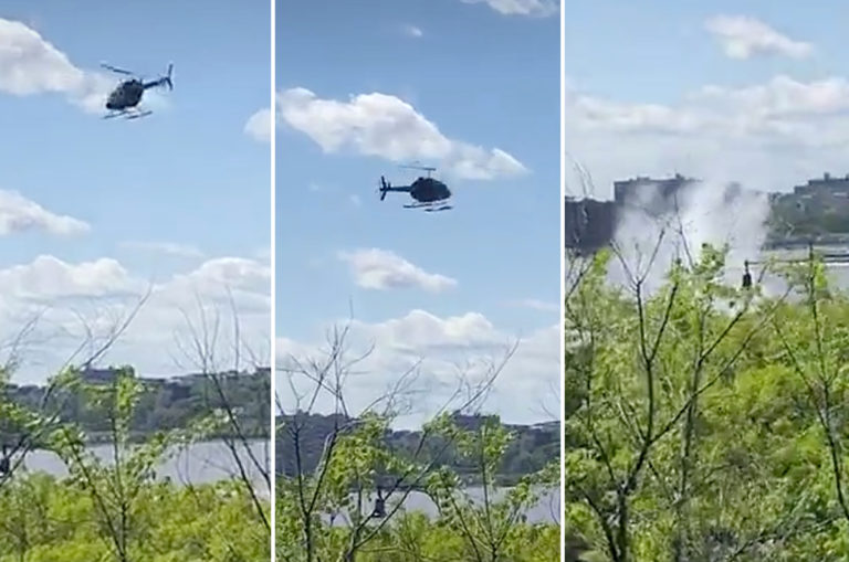 A helicopter crash landed in the Hudson River near a busy Manhattan heliport Wednesday and partially sank, but not before the pilot was able to escape mostly unscathed. The 34-year-old
