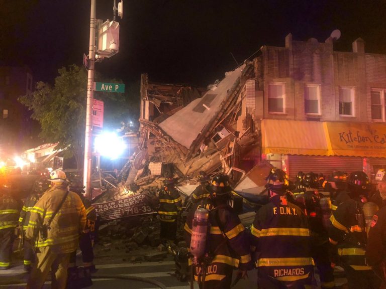 A building has collapsed on Avenue P and East 5th Street in Flatbush, after an out-of-control vehicle slammed into it on Monday night. The incident prompted a massive response from