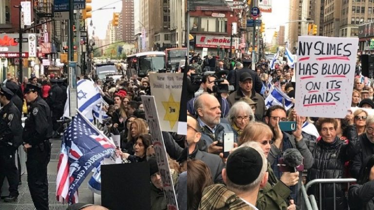 Several hundred people gathered on one day’s notice in Midtown Manhattan at The New York Times office building to send the publication a strong message: Jews will not tolerate the