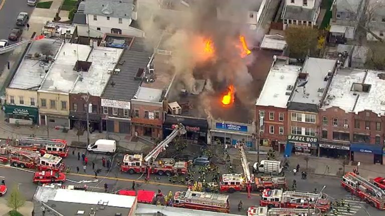 A five-alarm fire ripped through a sushi restaurant and medical office in Marine Park, Brooklyn. The fire broke out in the restaurant on Flatbush Avenue near Quentin Road just before