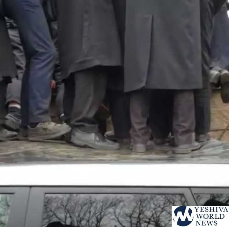 This video is at the Monsey Levaya / Kevura of the Skulener Rebbe ZATZAL. These people climbed on top of this car to get a better view, causing serious damage