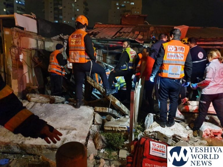 United Hatzalah volunteers treated two people, on in serious condition and the other in moderate-to-serious condition after a building with a restaurant in it partially collapsed on Martin Buber Street