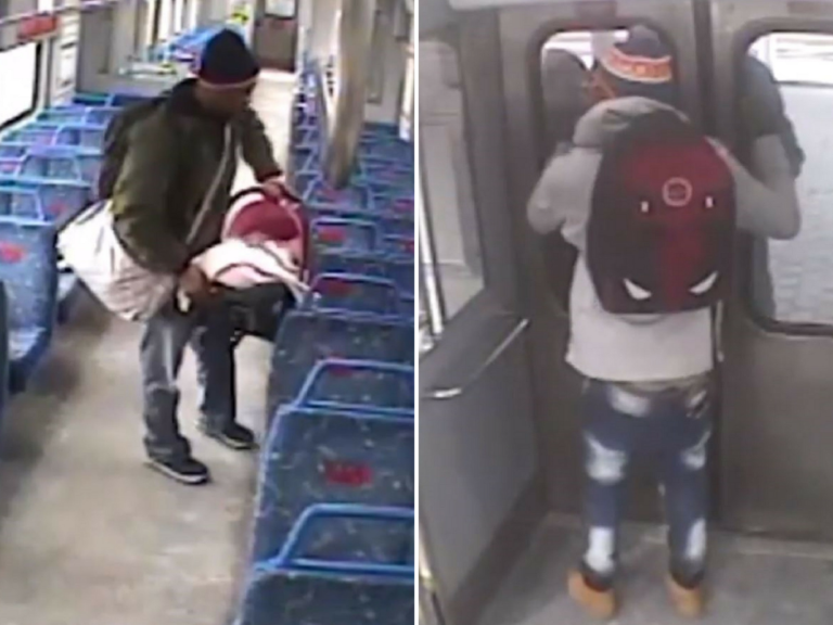 A surveillance video released by a transit authority in Cleveland shows a man stepping off a train to smoke a cigarette and then frantically chasing after it when it leaves