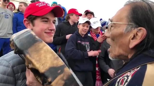 The student who stared and smiled at an elderly Native American protester drumming in his face outside the Lincoln Memorial as his schoolmates chanted and laughed says he did nothing