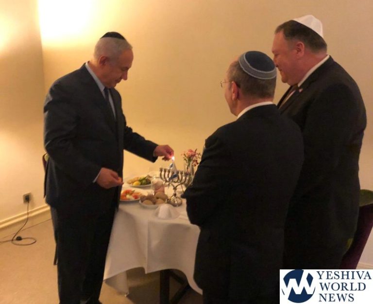 Prime Minister Benjamin Netanyahu is now meeting with US Secretary of State Mike Pompeo in Brussels. At the start of the meeting, the Prime Minister lit the second Chanukah candle