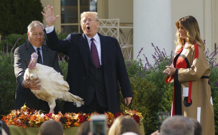 In an annual Thanksgiving tradition, President Donald Trump used the power of his office Tuesday to keep a pair of turkeys off the holiday table. But Trump jokingly warned that