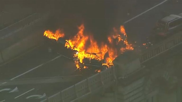 An auto wreck on the Brooklyn Bridge killed one person Wednesday and sparked a fire that engulfed three vehicles and cut off a key New York City artery at the